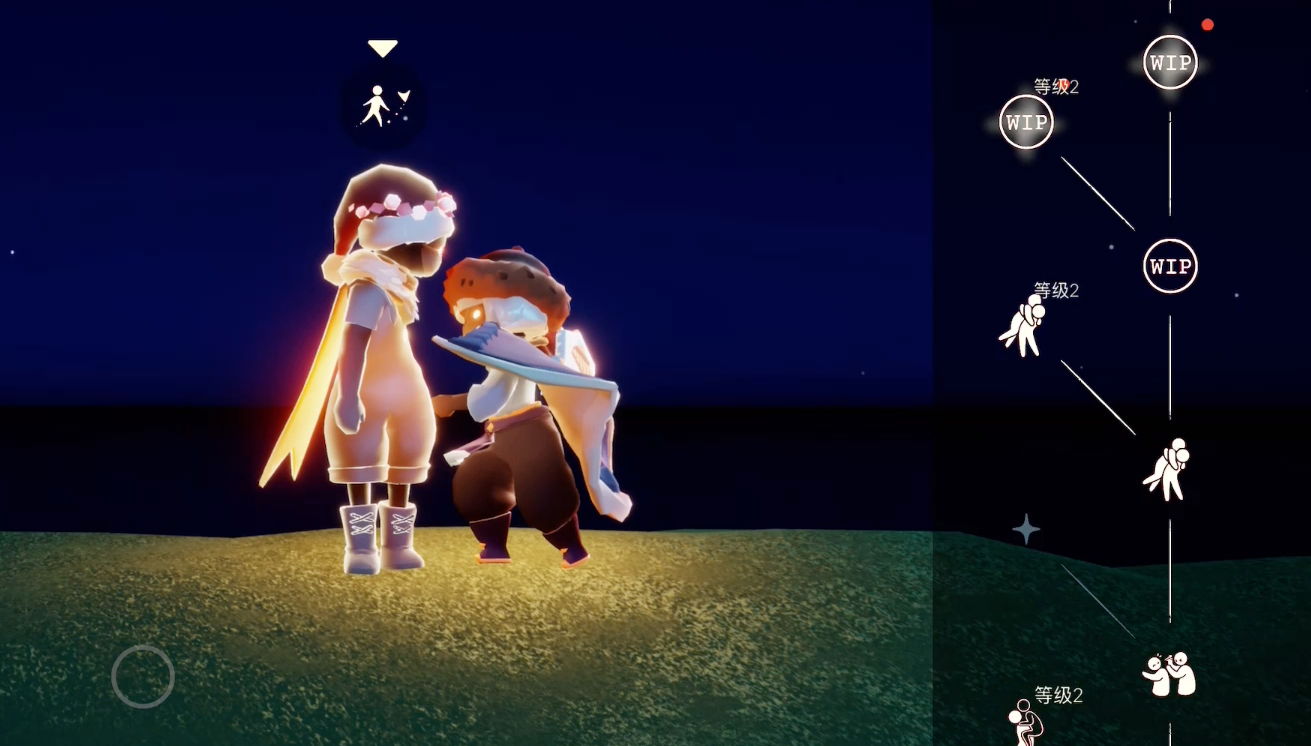 找到先祖后,崽崽们需要完成他的回忆任务才能兑换躲藏动作。回忆任务并不难,主要是跟随先祖的光影收集记忆碎片。过程中可能会遇到捣乱的螃蟹,记得长按角色大叫掀翻它们,避免被撞掉光翼哦。完成任务后,回到遇境的星盘就能用蜡烛和爱心兑换躲藏动作了,兑换后记得点击动作栏里的图标激活使用权限。