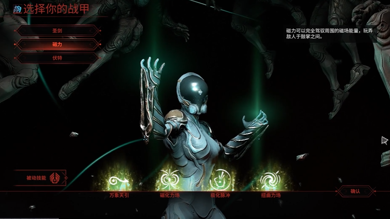 初始战甲的选择对新手玩家至关重要。游戏开局提供三款战甲供玩家选择:圣剑、伏特和磁力。这三款战甲各有特点,适合不同的战斗风格和游戏阶段。圣剑以其均衡的属性和直观的技能效果成为新手最推荐的选择,擅长近战攻击,拥有位移、控制和范围攻击能力,适合快速熟悉游戏机制。伏特则偏向输出,擅长操控高压电,后期上限较高,但前期对能量管理和技能释放要求较高。磁力侧重于控场和集群伤害,适合喜欢策略性玩法的玩家,但对振幅晶体的依赖较强,前期表现相对平庸。