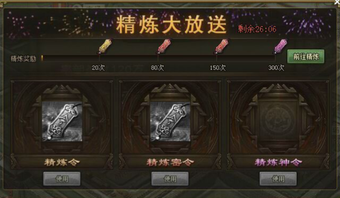 精炼大放送活动期间,每进行10次金币精炼就能获得1次免费精炼,同时累积金币精炼次数还能解锁特殊精炼机会。建议把古城探宝活动送的免费精炼次数留到精炼活动时再用,这样能最大化收益。平时多留意游戏内的限时活动,比如木牛流马或者节日活动,这些时候通常会赠送大量精炼材料。