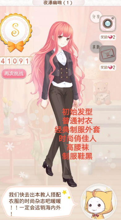 暖暖环游世界加拿大1支线任务包含多个关卡,其中夜瀑幽响系列是重点挑战内容。454夜瀑幽响1关卡的高分搭配推荐使用职业外套、普通衬衫和时尚俏佳人下装,这套组合能稳定获得S评分。外套的选择尤为关键,职业外套的正式感与关卡主题高度契合,而时尚俏佳人下装则提供了必要的时尚元素平衡。头饰方面可选用冰晶轻羽或格纹贝雷帽提升整体评分。