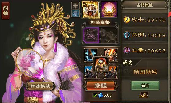 兵器配置需优先提升七杀剑至80级(攻击7600+)、贪狼甲72级(防御4500+)、破军印75级(带兵12000+),确保基础属性达标。珍宝系统以一珍宝为基础,重点强化攻击与血量部件。神兵等级建议平均75级以上,宝石选择攻击与血量双属性神石,六颗全镶嵌可显著提升容错率。貂蝉作为备选武将,驱虎套装可干扰敌方阵型,但需注意其生存能力较弱,需配合觉醒战法使用。