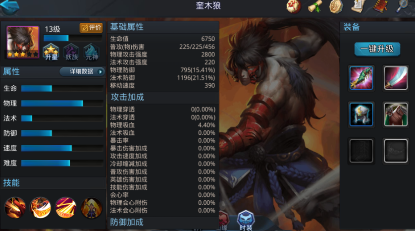 英雄培养需兼顾技能升级与装备搭配。奎木狼的核心输出技能贪狼魂可提升全队暴击率,优先升级该技能能显著提高团队输出效率。装备选择以暴击率和物理攻击加成为主,初期可通过系统推荐装备快速成型,后期逐步替换为高阶暴击套装。需注意,英雄定位决定资源分配策略,输出型英雄应优先强化武器和饰品,防御型装备仅作为次要选择。