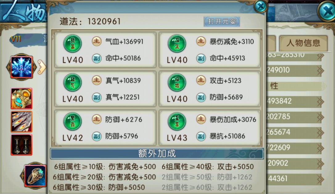 主选焚天系列提升灼烧伤害,辅以八凶系列增强阵法效果。属性培养方面,法术攻击、命中、暴击为优先项,真气上限仅对八凶流有实质价值。宝石选择遵循攻击类装备镶嵌法攻、命中、暴击,防御类装备侧重气血、防御、爆抗的平衡分配。