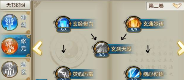 第三重侧重大招选择,神剑御雷真决是群P核心技能,9段范围伤害配合天书雷神降世可大幅提升爆发。若侧重功能性,真雷法衣的易伤效果能辅助团队集火。绝圣弃智仅推荐自爆流使用,需搭配高气血属性。天书选择通玄系,优先点出雷云奇变风雷之怨强化唤雷与神剑伤害,修元系则补充防御属性如玄冰护体。