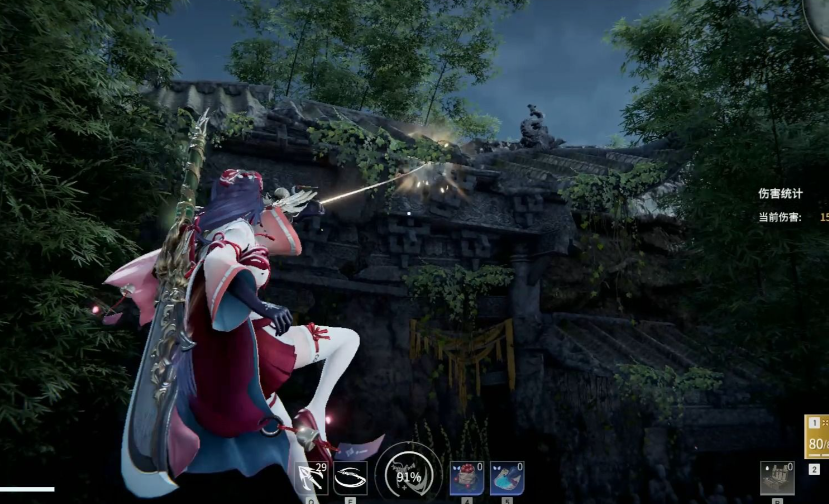 踢腿动作主要通过特定武器或角色的技能组合触发。匕首是触发踢腿的核心武器,操作流程为:装备匕首后,使用普通平A攻击接升龙,空中连续左键攻击2次后按下F键,再左键攻击2次接右键即可完成踢腿连招。这一连招需要精确的节奏控制,尤其是升龙后的空中攻击衔接时机。鬼哭神嚎魂玉可强化踢腿效果,通过普攻+shift触发金色闪步后连按两次右键或长按右键释放,角色会呈现蓝色霸体状态的跳跃踢腿动作。