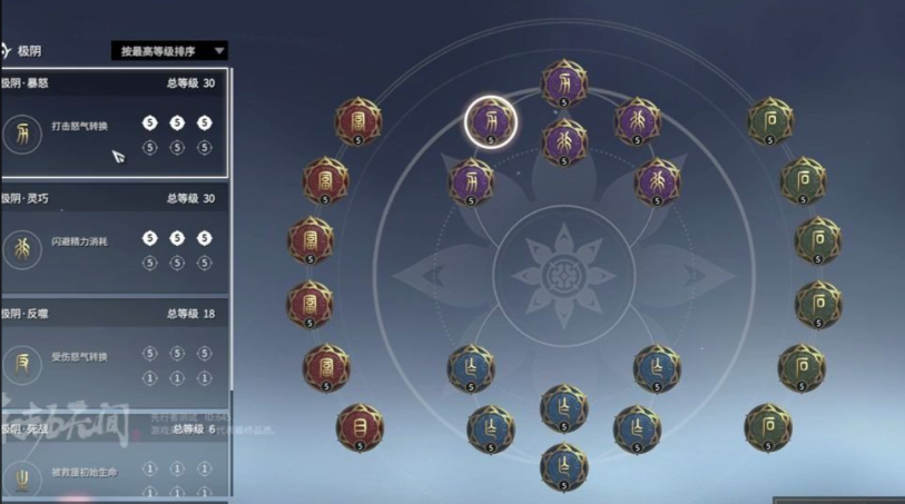 红色本源印记中,易怒优先级最高,能加快奥义积攒速度,适合依赖大招的角色;体能增强精力恢复,让闪避更灵活;坚韧延长倒地后的坚持时间。紫色极阴印记推荐暴怒和反噬,前者通过攻击积攒怒气,后者靠受伤转化怒气,两者都能大幅提升战斗节奏。灵巧减少闪避消耗,适合高频位移的角色。