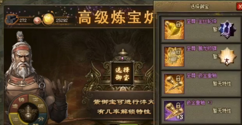 御宝淬火是提升属性的关键步骤,仅限紫色御宝使用。淬火时可选择攻击、防御、血量等属性,其中攻击和血量加成优先级较高。淬火需消耗木炭,选中木炭洗出双属性为最优策略。突破每级消耗精粹逐级递增,但能显著提升御宝的基础数值。玩家需合理规划资源,优先突破主力武将的御宝,以最大化战力收益。