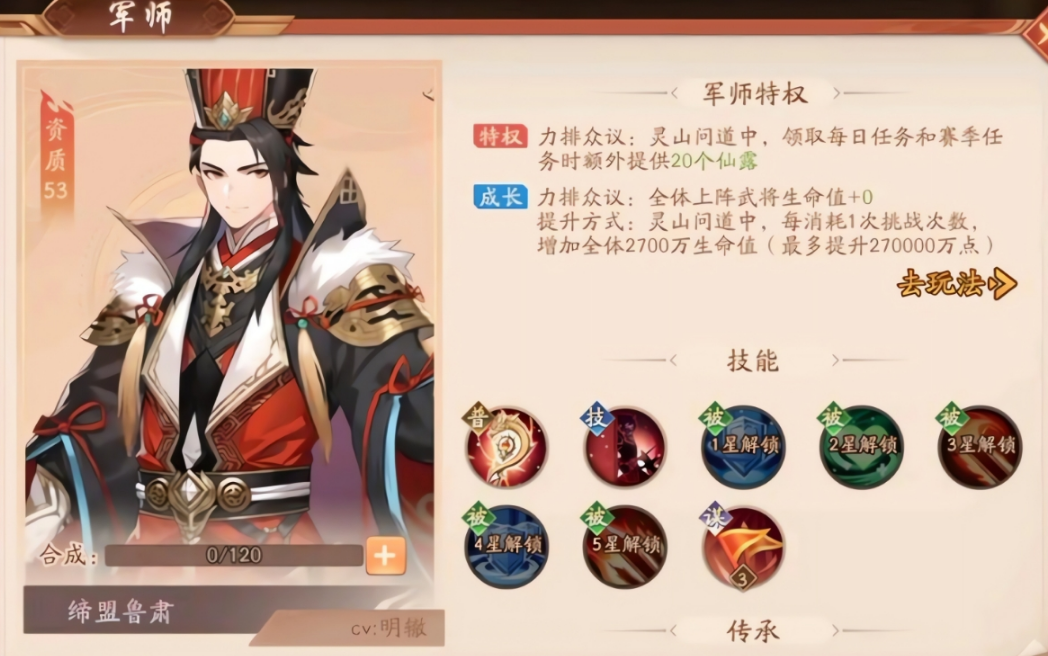 计谋升级需要消耗兵法心要或计谋心要,这些道具可以通过九州战斗等玩法获取。法器升星则依赖军师碎片,巅峰论战等活动是主要来源。奇门和太学系统则需要四系秘术图卷(火、雷、风、水)来激活技能树,进一步提升军师的辅助能力。不同军师的属性类型会影响他们的定位,比如火系擅长灼烧伤害,水系偏向控制和治疗,风系提升计力回复速度,雷系则强化召唤物效果。