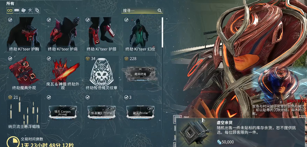 最值得关注的是那些限定版武器和改造卡,它们往往拥有独特外观和强力属性加成。改造卡能大幅提升战甲或武器的性能,比如增加元素伤害或特殊效果。此外还能买到一些平时很难刷到的稀有资源,这对提升装备水平很有帮助。记得优先挑选自己最需要的物品,毕竟资源有限不可能全部搬空。