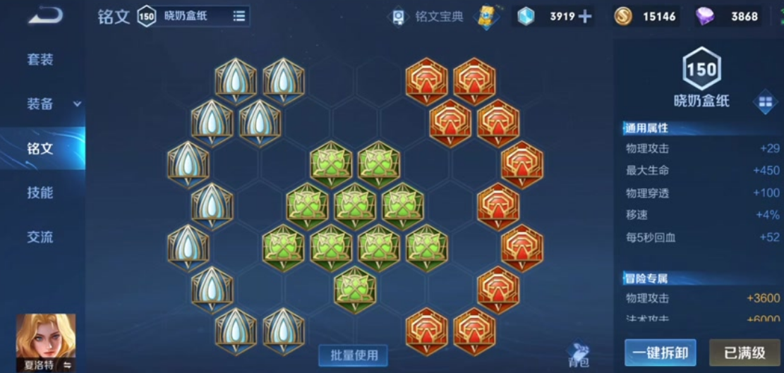 铭文搭配对夏洛特至关重要主流选择是10个异变、10个鹰眼和10个隐匿,这套百穿铭文能提供高额物理穿透和移速加成,让技能命中后更容易追击或撤退。技能加点方面建议主升二技能前进喷泉,副升一技能迅光三角剑,因为二技能不仅有伤害还能回血,主升后可缩短冷却时间,提升对线时的换血优势。