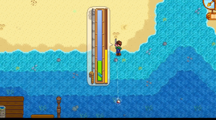 为了提高钓鱼的效率和体验,你还可以做一些准备工作。游戏初期你会收到威利寄来的竹钓竿,用这个就可以钓。但你钓鱼技能等级提升,记得去海滩边的鱼店升级装备,比如换上玻璃纤维鱼竿,这样就能安装鱼饵了。使用鱼饵可以大大缩短鱼儿咬钩的等待时间,让你在相同时间里能尝试更多次。虽然钓太阳鱼本身不算难,但通过这些准备,你能更轻松地完成收集,或者快速积累钓鱼技能的经验值。