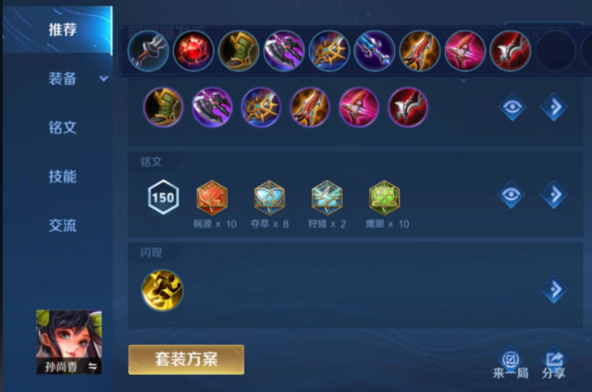 除了核心输出装,续航和生存装备对孙尚香来说也很关键。泣血之刃是一件不错的选择,它提供的物理吸血能大大增强孙尚香的持续作战能力,让她在团战或带线时可以通过打野怪或小兵快速回血,减少回城的次数。 到了大后期,当双方装备都成型时,最后一件装备的选择往往决定了团战的胜负。如果生存压力大,对面有强力刺客针对你,那么名刀·司命或贤者的庇护(复活甲)是很好的保命选择,它们能给你关键的存活机会来打出反手输出。 如果局势非常顺风,追求极致的伤害来快速终结比赛,那么破军会是很好的补充,它对生命值低于一半的敌人能造成额外伤害,强化收割能力。