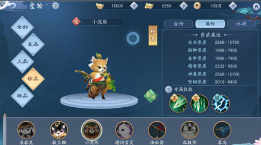 接着来看小浣熊,这只宠物可以说是副本和日常活动中的好帮手。它的技能以群体攻击为主,并且能附带降低对手暴击抗性和提升自身暴击率的效果。有它的暴击增益Buff覆盖率还不错,能在一段时间里稳定提升你的输出伤害。因为技能多是范围效果,在清理大量怪物的时候效率很高,所以对于主要精力放在通关各种PVE副本、挑战首领的玩家来说,小浣熊的实用价值非常高。无论你是什么职业,想提升打怪效率都可以带它。在PVP中,一些远程职业选择它来增加爆发伤害也是可行的。
