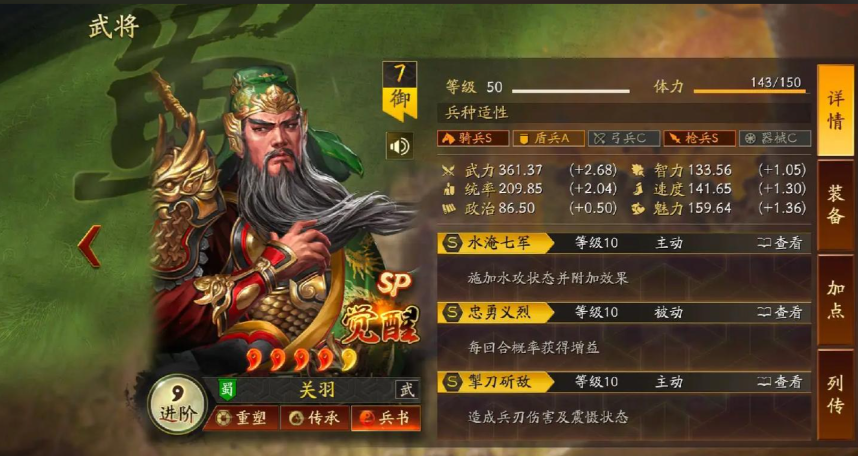 武将的加点和速度调整是实战中的细节关键,记得给关羽和张飞额外补充一些速度属性,至少要保证比战场上常见的对手快一点,这样才能更好地抢得先机,赵云则可以全部增加武力来追求极限输出,或者适当分配一些点数到统率上以提升自身的生存能力,队伍的强度比较依赖战法的等级和武将的红度。