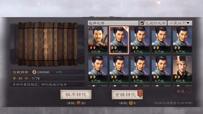 获取战法经验最直接的途径是转化武将。游戏中,三星及以下的武将通常作为转化战法经验的主要材料,你可以在战法界面中选择将这些武将转化为战法点。转化时可以选择消耗铜币或金铢,消耗金铢能获得双倍战法经验,这为资源充裕的玩家提供了快速积累的渠道。平时抽将获得的大量低星武将不要随意丢弃,他们是战法经验的重要来源。赛季重置后战法等级会清零,每个赛季都需要重新积累大量战法点,所以持续转化武将是长期工作。