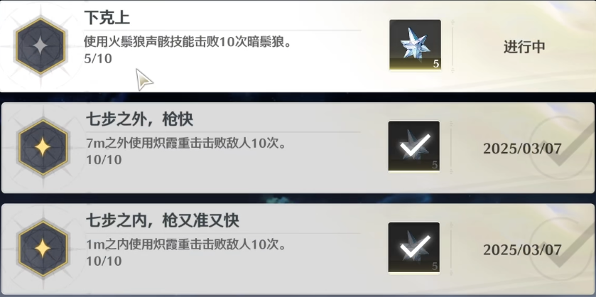 挑战特定成就也能视为一种任务,它们往往有明确的达成条件,例如看好了为师只打一遍成就,要求你在黑海岸群岛的指定挑战点,一次性达成被攻击次数少、用特定角色击败敌人以及限时通关等多个目标,提前做好角色练度和战斗策略准备是快速完成的关键。另一个例子是下克上成就,它要求你装备火鬃狼声骸技能去击败暗鬃狼,只需前往狼群位置,清理杂兵后控制伤害并最终用声骸技能完成击杀即可。