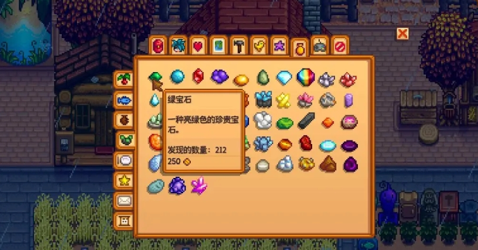 任务的核心要求是在最长七天内交付红宝石、黄水晶、绿宝石、翡翠和紫水晶各一个,这些宝石不必在任务期间专门收集,之前储备的资源也可以有效使用,获取方式主要包括在鹈鹕镇矿井中对应矿层挖掘,在运气较高的日子深入矿层效率更高,也可以通过钓鱼宝箱、淘金或沙漠矿炸矿等多种途径获得。