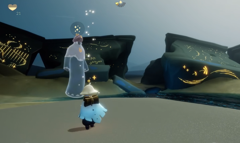 进入云野初始大厅后,直接转向右侧的云层洞穴入口,穿过云层即可进入云顶浮石隐藏区域,这片区域由多座浮空岛屿组成,最左侧体型最小的浮岛就是地心灵的固定刷新点位,浮岛上的金人雕像可作为精准定位标识,避免在多座浮岛间混淆方向。飞行过程中可借助空中的白色云朵持续恢复翼能,无翼玩家也能依靠云朵逐步滑翔抵达目标浮岛,无需担心能量耗尽坠落。