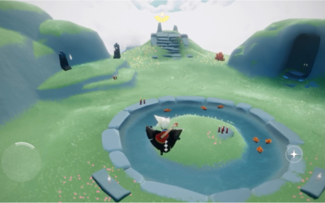 圆梦村与雪隐峰区域共包含四个小金人,圆梦村左侧山洞、村落后方窗台、剧场平台各有一个,雪隐峰半山腰洞穴与峰顶平台各有一个,从竞技场终点传送进入圆梦村后,沿山体飞行即可逐一找到,收集时注意利用气流节省飞行体力,避免坠落浪费时间。滑行赛道中段路中间有一个小金人,顺着赛道下滑过程中贴近路面即可自动拾取,无需特意停留,整体路线连贯,适合一次性完成全图小金人与先祖收集。