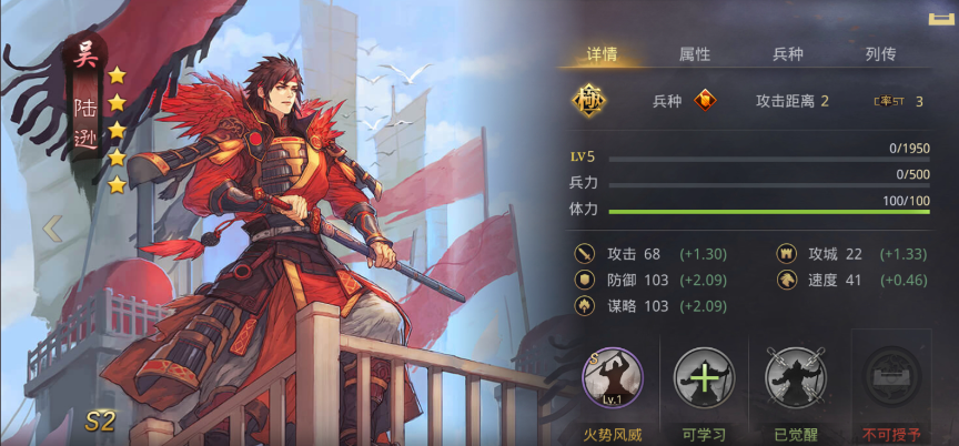 阵容站位固定为陆逊大营、吕蒙中军、孙策前锋,兵种均选择弓兵进阶以激活阵营加成,陆逊全谋略加点最大化火势风威的群体伤害与灼烧联动效果,吕蒙全谋略加点提升控制稳定性与后续爆发伤害,孙策全攻击加点配合自带战法叠加伤害,同时补足前锋坦度。陆逊大营携带不攻与十面埋伏,不攻提供稳定指挥增伤且不受控制干扰,十面埋伏兼顾群体伤害与敌军减伤,完美契合火势风威的二段灼烧机制,让敌军在吃到群体伤害后触发额外火攻,持续压低整体血线。