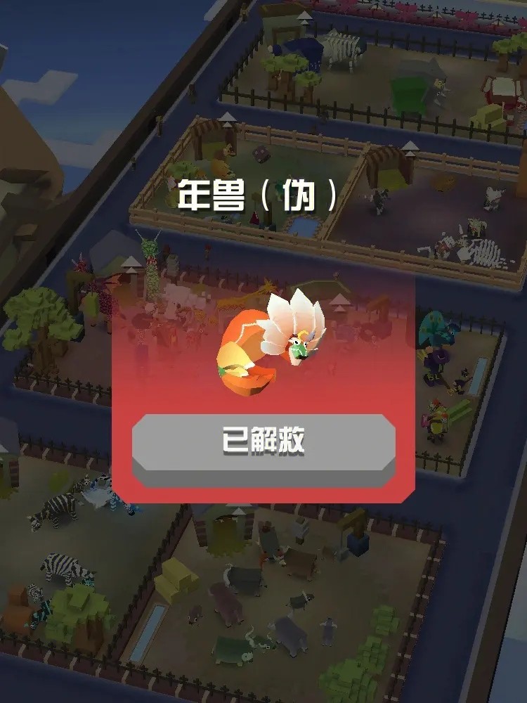 疯狂动物园新年动物包含年兽(伪)、福猩、火爆驼、报晓金鸡,还有灯笼绵羊、布偶戏兔、礼品鸵鸟、吉祥象等新春限定动物,这些动物分布在不同地图,需满足对应条件才能遇见与驯服。