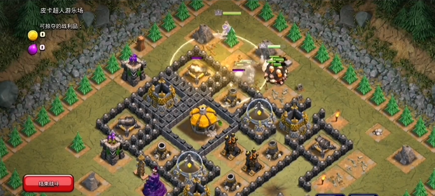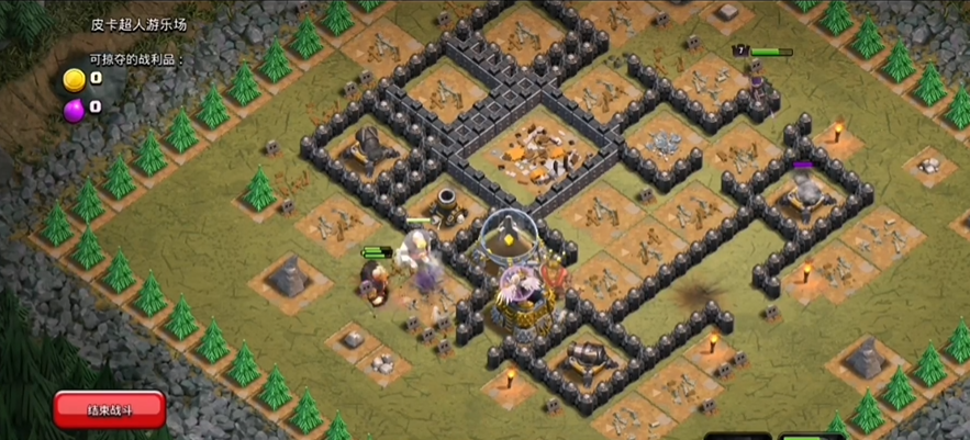 阵型布局直接影响防御效果,核心采用回形或迷宫式结构,将大本营、核心防御、资源仓库置于阵型最深处,用高等级城墙多层包裹,外层布置训练营、工人小屋等非核心建筑作为缓冲,延缓敌方推进速度。城墙避免全面围合,优先保护关键建筑,采用之字形、套娃式设计引导敌方路线,使其在防御火力网内持续消耗。防御建筑交叉配置,远程箭塔、X连弩与近程法师塔、炸弹塔互补,防空火箭、地狱塔覆盖核心区域,双王与部落城堡靠近中心,既能支援防御,又能防止敌方轻易引援。
