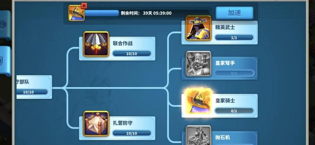 解锁2阶后,军事科技需同步跟进,学院优先研发对应兵种的T2解锁科技,完成后才能训练T2步兵、骑兵、弓兵与攻城单位。T2兵种属性远胜T1,攻防与血量均有显著提升,是前期战力跃迁的关键。训练时优先集中资源爆主力兵种,避免多线分散消耗,同时预留粮食维持部队补给,防止缺粮导致兵力无法正常部署。