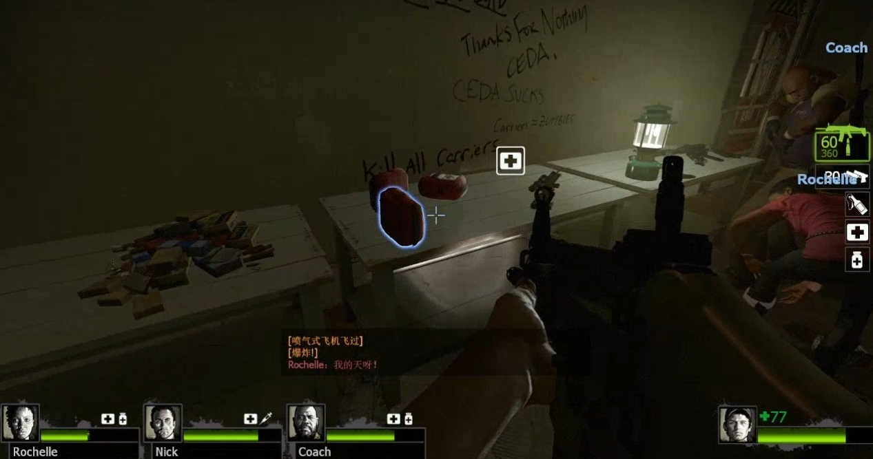 下楼后会看到一辆车,按下E键使用开关启动车子,音乐响起后僵尸群会来袭,清理完所有僵尸后从刚才的楼梯重新上楼。这时候车子已经在屋顶和对面阳台之间搭了一座桥,从桥上进入对面阳台。从屋里下楼后去另一间开着门的屋子,里面有医药箱可以补充物资,之后从正门出去来到马路上。沿着马路前进到尽头,进入右边的蓝色屋子,上到二楼后回头能看到一扇开着的门,从那里跳下去继续沿着小路走。