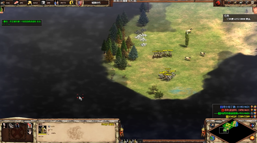 玩家需要面对东罗马帝国的坚固防御。本关的核心目标是摧毁敌方城镇中心,但蓝色敌人君士坦丁堡的城墙和防御工事极为严密,直接强攻难度较大。开局阶段,玩家会获得少量初始部队,包括骑兵和弓箭手,同时绿色敌人会迅速发动进攻,因此首要任务是稳固防守并快速建立经济基础。