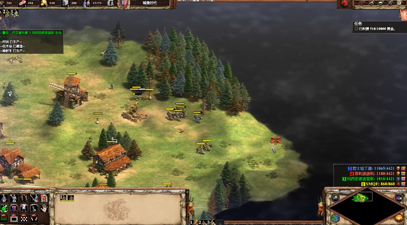 经济运营方面,建议优先采集食物和木材,确保村民持续生产。由于本关黄金资源有限,需谨慎分配科技升级,避免浪费在不必要的项目上。靶场和马厩是主要军事建筑,骑射手和轻骑兵的组合能有效应对敌方步兵和弓箭手。红色敌人会在中期发动骑士进攻,但威胁相对较小,可利用地形和城堡进行防御。蓝色敌人的城墙和箭塔构成主要障碍,不建议直接拆墙,而是通过歼灭守军削弱防御。
