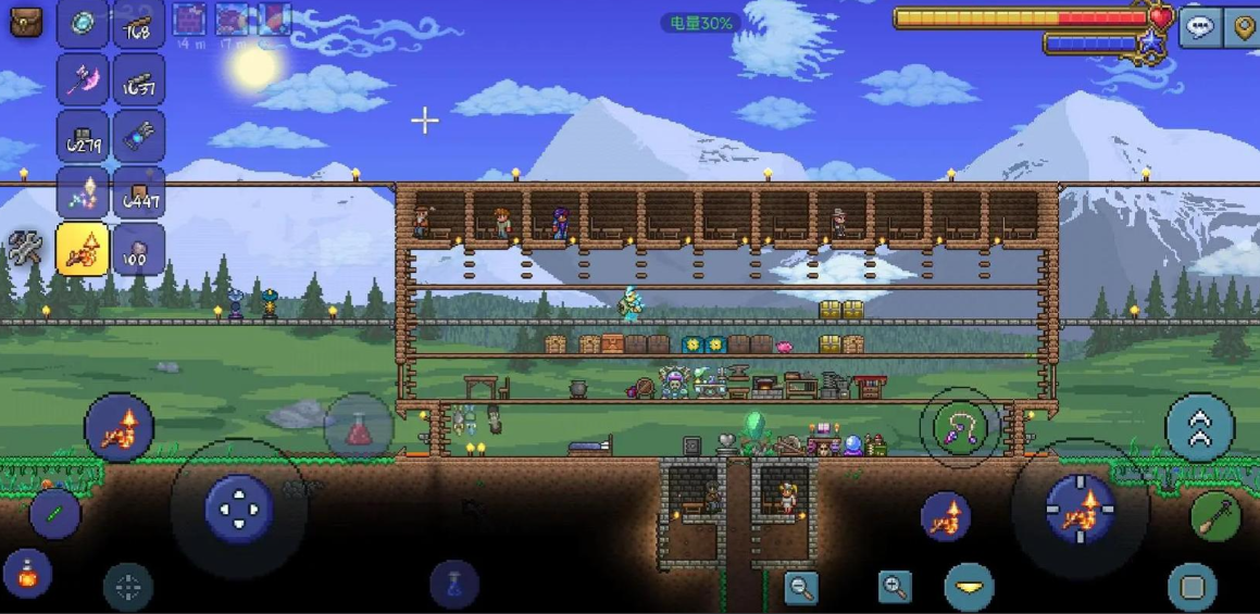 咱们最好选择单人模式、软核难度和小世界,这样能轻松适应游戏节奏。角色创建时,难度选软核模式,世界生成选普通模式,第一次玩不建议挑战高难度。进入游戏后,出生点附近会有一个向导NPC,他能提供基础建议和合成配方,记得多和他互动。白天先砍树收集木材,顺便打史莱姆获取凝胶做火把,天黑前尽量用木材搭个简易房子,哪怕是用土块围起来也行,晚上可以往下挖矿探索。