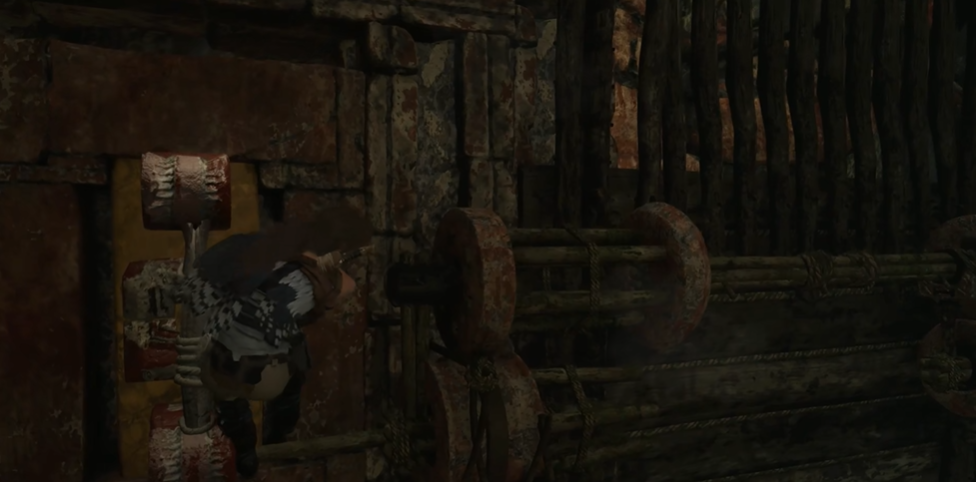 后续解谜需解决燃油流向问题以点燃下层木条。具体操作分为三步骤:在右侧石柱用绳索箭矢连接两个木桩;返回左侧石柱推动拉杆顺时针旋转两格后割断连线;再次顺时针旋转石柱三格。完成机械调整后,推动池边虎头开关点燃燃油,火焰将沿设计路径引燃下层木条。通道开启,进入即可推进剧情。该环节考验玩家对场景互动元素的观察力与逻辑顺序的把控能力。