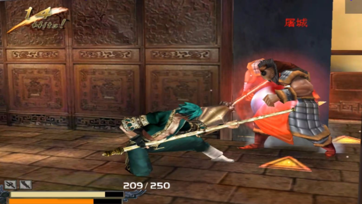 接下来需要处理无名杀手小何,将他引至单独区域后他会要求单挑,使用基础武器连招就能较为轻松地取胜。击败小何后不要理会剩余的和尚,直接寻找本关的BOSS屠城。与屠城对话时同样用ESC取消,快速进入战斗节奏。