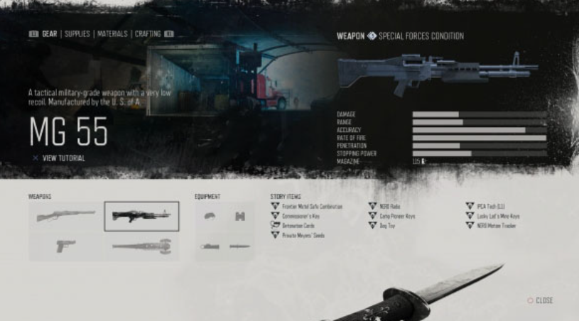 武器存放与更换的逻辑,根植于游戏设定的武器性能梯度体系。游戏中武器存在明显的分级,例如BND-150被普遍视为顶尖选择,而芝加哥打字机、MG55等则属于实力强悍的S级梯队。这些高级武器通常需要你推进主线剧情,并将对应营地的信任等级提升到足够高后才能购买解锁。你的武器库实际上是游戏进程逐步扩展的已解锁武器列表,所谓的存放策略,就是在不同章节和战斗场景下,从这个列表中选择最合适的几把装备在身上。例如在前期,你只能存放和使用像SAF、毒刺这类易于获取的武器;而到了后期,你才能选择将芝加哥打字机这类用于应对尸潮的武器作为常备选择。
